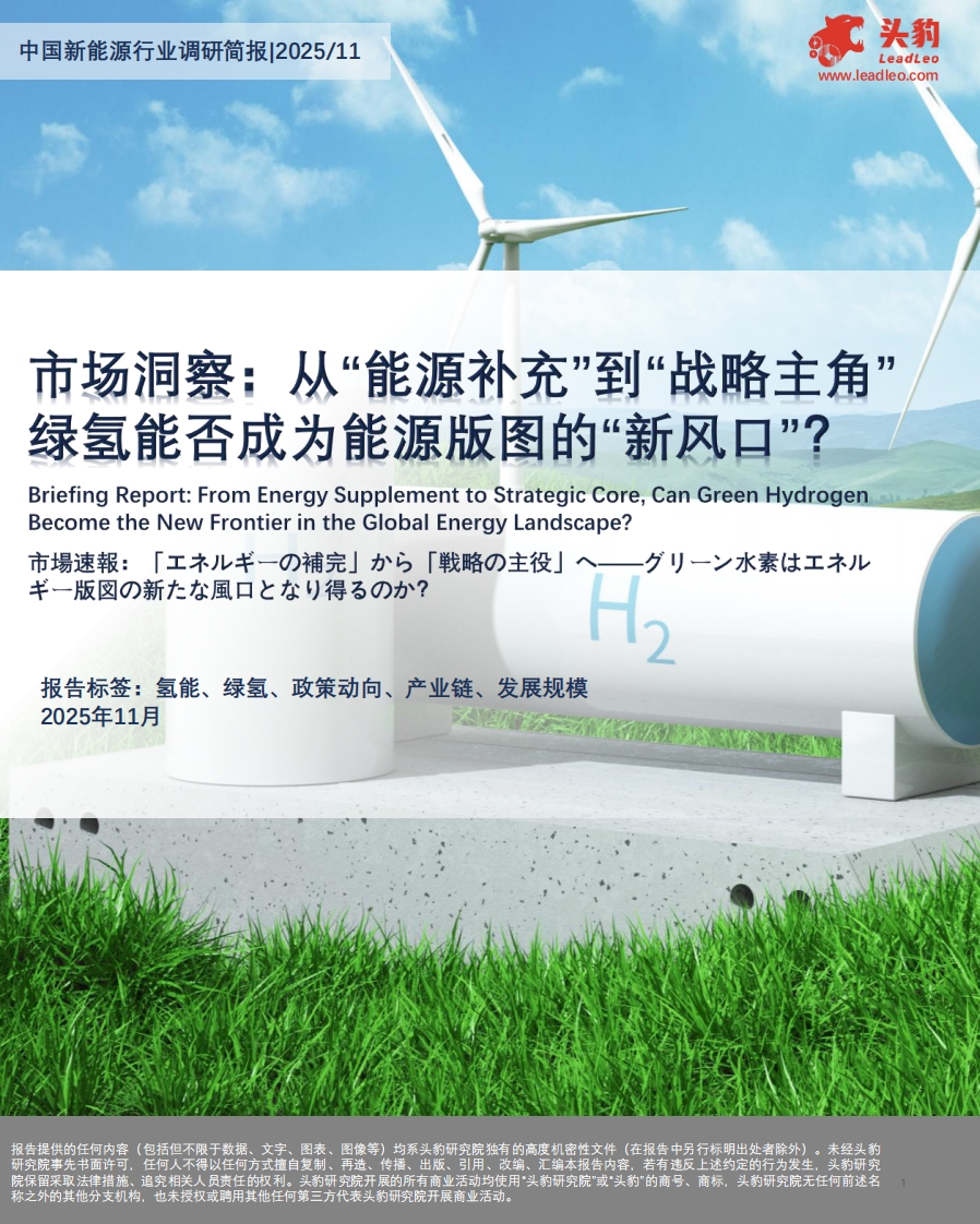 头豹研究院:2025年氢能市场洞察报告:从“能源补充”到“战略主角” 绿氢能否成为能源版图的“新风口”?