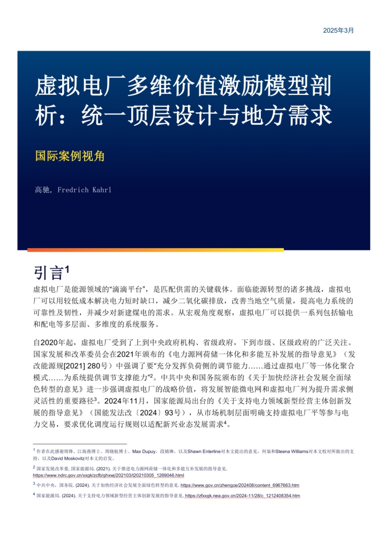 虚拟电厂多维价值激励模型剖析:统一顶层设计与地方需求——国际案例视角