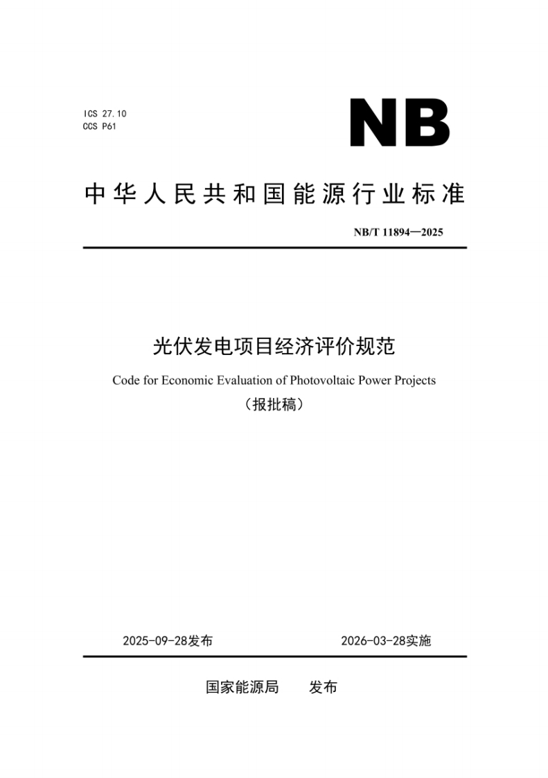 NBT 11894-2025《光伏发电项目经济评价规范》高清版