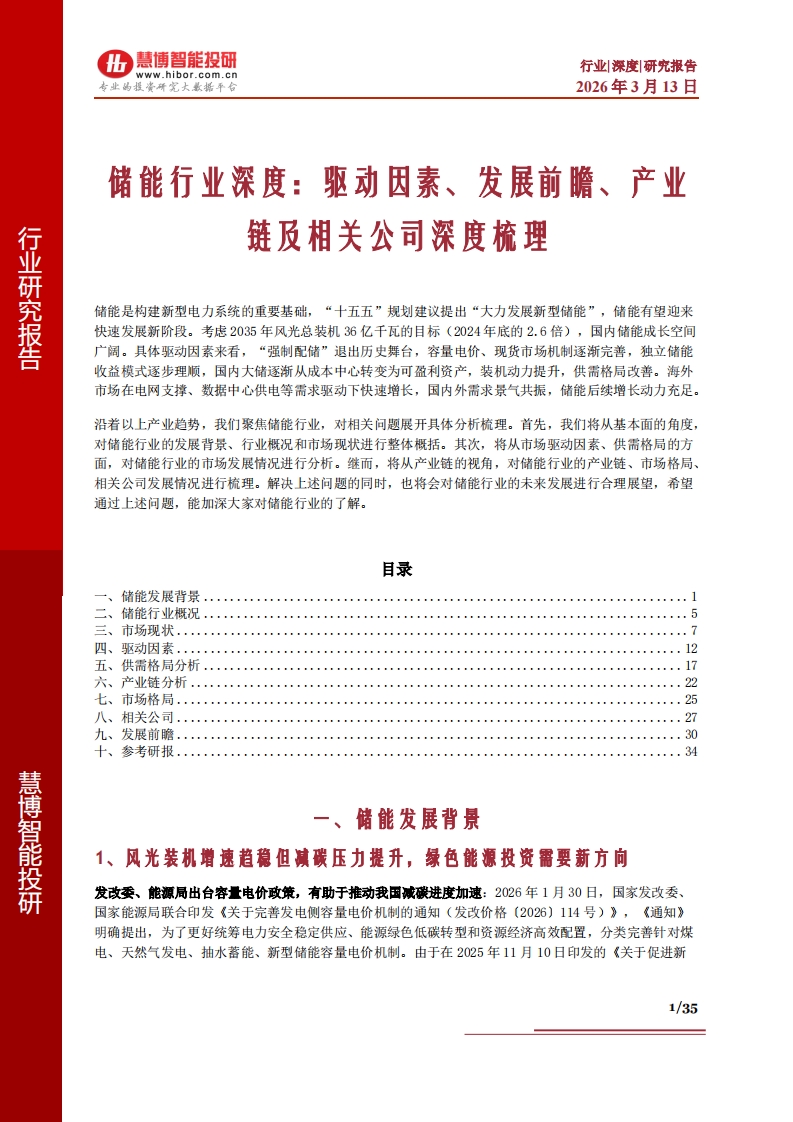 首页双碳基础知识碳达峰碳中和其他报告文献慧博智能投研证券:储能行业深度:驱动因素、发展前瞻、产业链及相关公司深度梳理