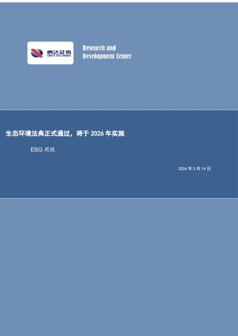 首页双碳基础知识碳达峰碳中和其他报告文献【研究报告】ESG周报:生态环境法典正式通过,将于2026年实施