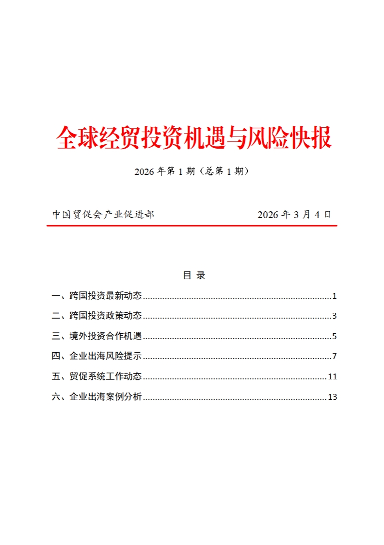 中国国际商会:《全球经贸投资机遇与风险快报》第1期