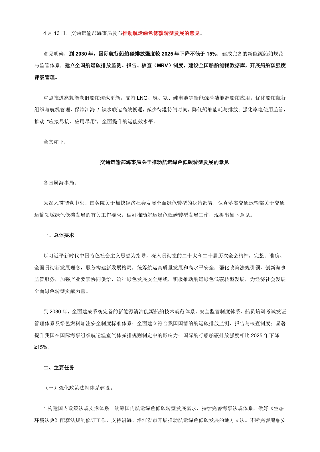 首页双碳基础知识碳达峰碳中和其他报告文献【政策】推动航运绿色低碳转型发展的意见