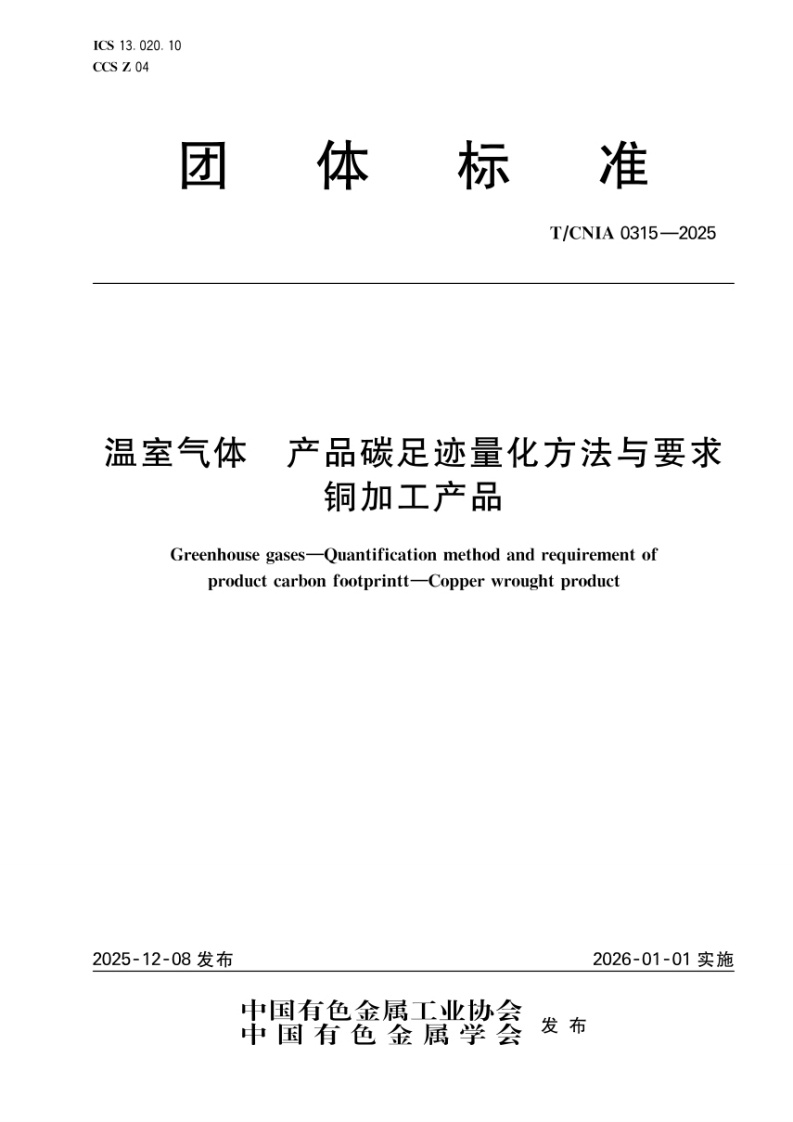 TCNIA 0315-2025温室气体 产品碳足迹量化方法与要求铜加工产品