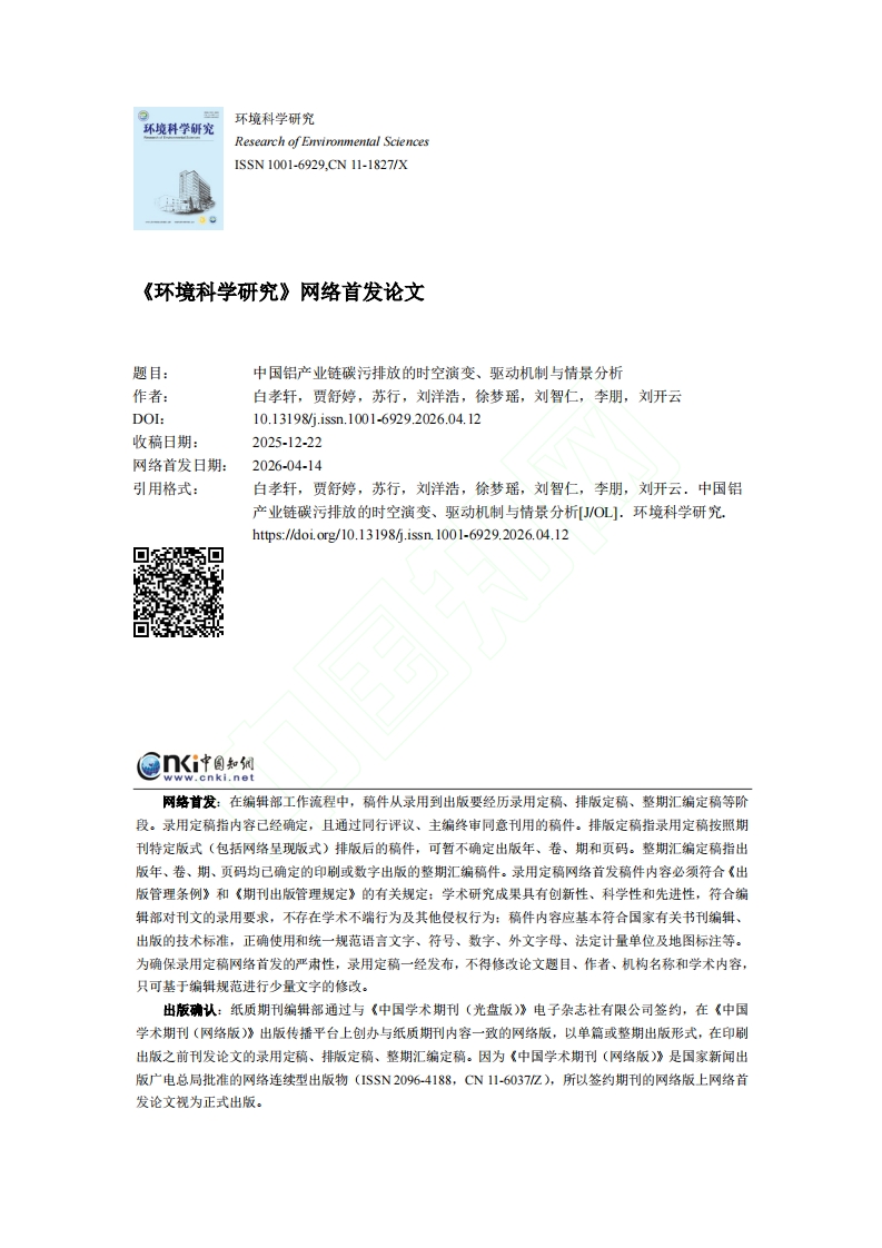 首页双碳基础知识碳达峰碳中和其他报告文献中国铝产业链碳污排放的时空演变、驱动机制与情景分析