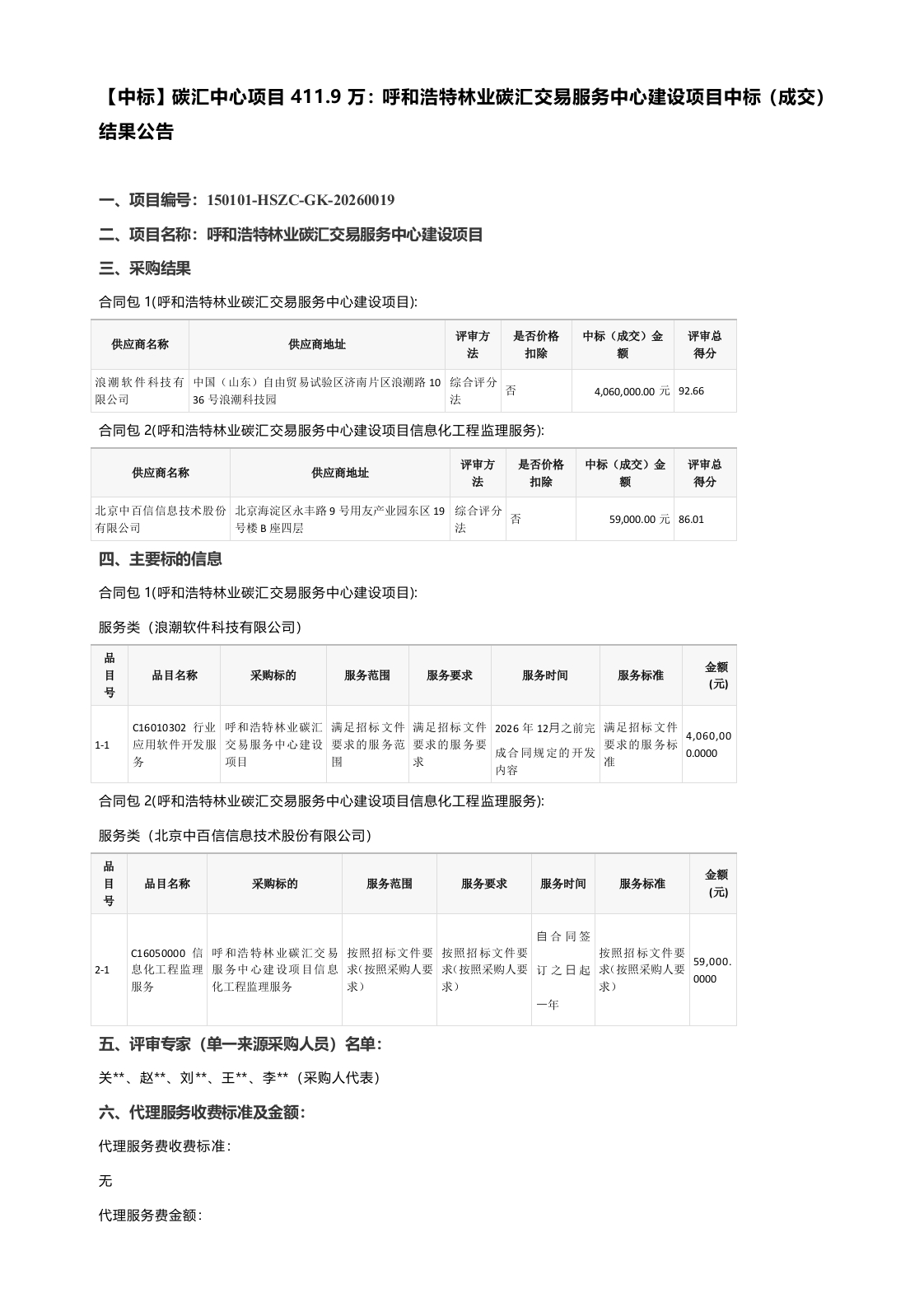 【中标】碳汇中心项目411.9万:呼和浩特林业碳汇交易服务中心建设项目中标(成交)结果公告