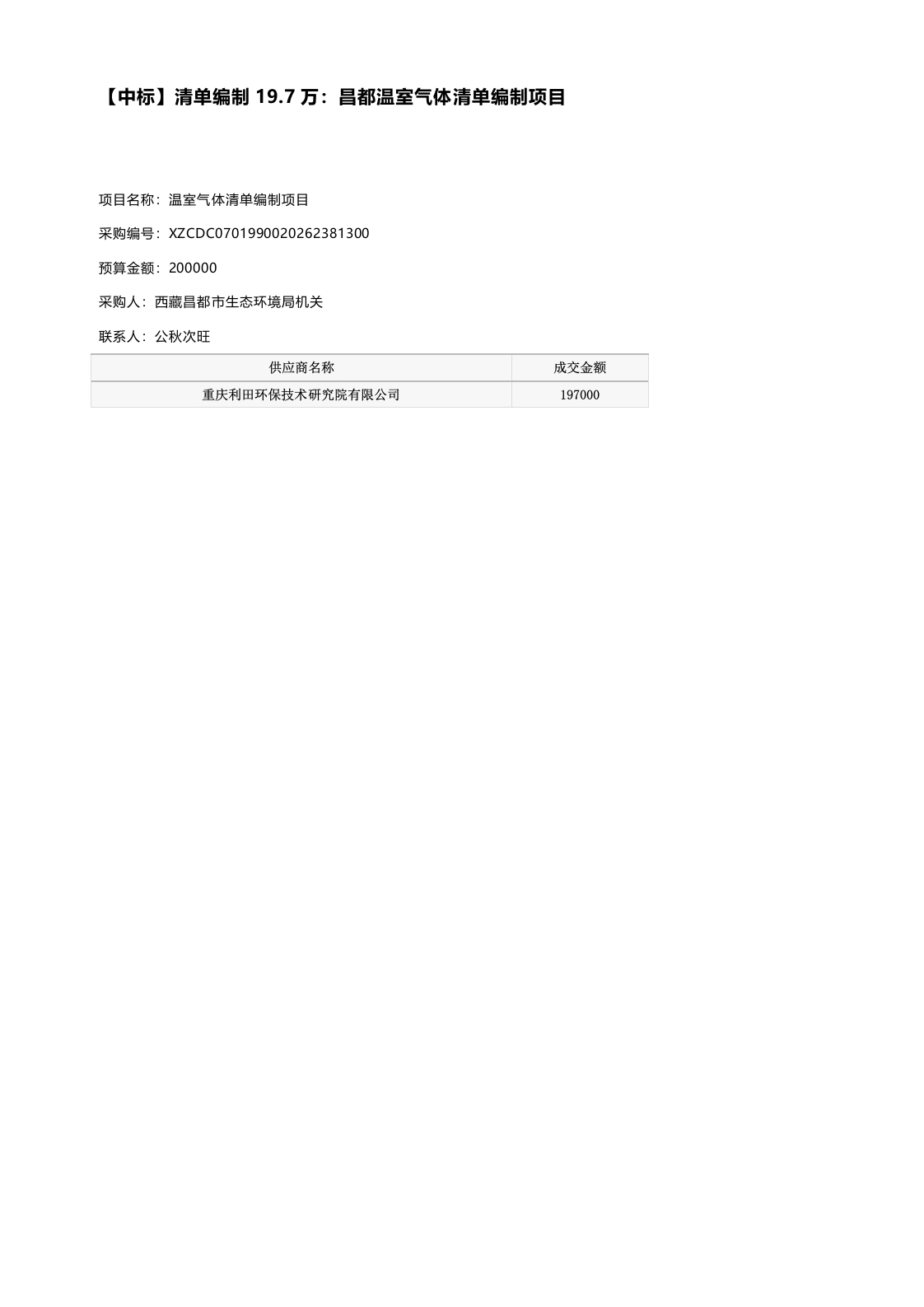 【中标】清单编制19.7万:昌都温室气体清单编制项目