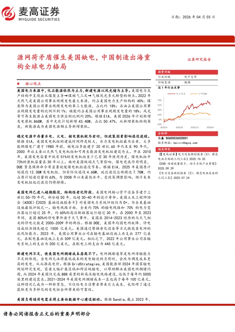 【推荐】源网荷矛盾催生美国缺电,中国制造出海重构全球电力格局