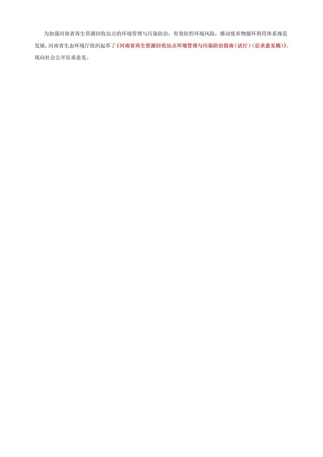 【政策】河南省再生资源回收站点环境管理与污染防治指南(试行)(征求意见稿)